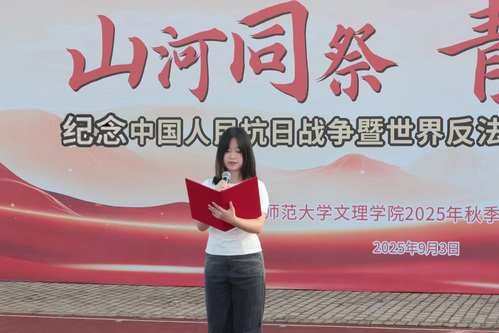 优秀学生代表陈思雨向全体学生发起倡议,她倡导同学们要铭记抗战精神,将“勤学、善思、励志、诚信”的精神融入学习中,做到立远志、见贤思齐、自律守纪、科学学习、建设班风,争做有理想有担当的新时代青年,用青春力量助力民族复兴。