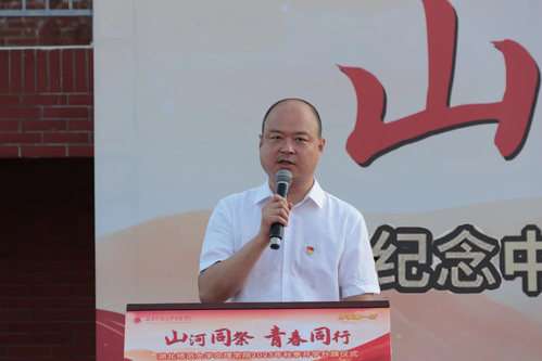 副校长、纪委书记许光以“致敬荣光八十载,筑梦青春向未来”为主题发表讲话。他指出,新时代的青年已接过“强国一代”的接力棒,应站在先辈的肩膀上,书写新的时代答卷。他对同学们提出四点希望:一是志存高远,做一名“把小我融入大我”的追梦人;二是勤奋学习,做一名“既读万卷书,也行万里路”的实干家;三是勇于创新,做一名“敢破敢立、敢闯敢试”的开拓者;四是品德高尚,做一名“温暖他人、照亮身边”的文明者。他强调:八十年前,先辈以奋斗赢得民族新生;八十年后,我辈须以奋斗绘就青春华章,用实际行动向世界宣告:强国一代,有我们在!