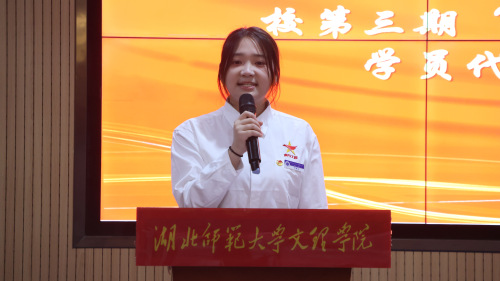 第二期“青马工程”培训班优秀学员代表徐微发言。她分享了自己在青马培训中通过理论学习筑牢思想根基、参与社会实践深化知识理解的成长历程,并寄语新学员珍惜机会,成为有理想、敢担当的时代青年。