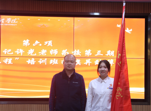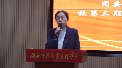 第三期“青马工程”培训班学员代表邓锦玉发言。她表示将以身作则,在知行合一中主动担当、在服务奉献中砥砺初心、在勤学笃行中锤炼本领,并号召学员以培训为起点成长为新时代青年马克思主义者。