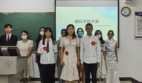 2022921日晚,人文学部在教学楼1A403举办了线下模拟求职大赛,本次活动旨在帮助学生认识和展示自我,以及明确求职目标和提高就业技巧。