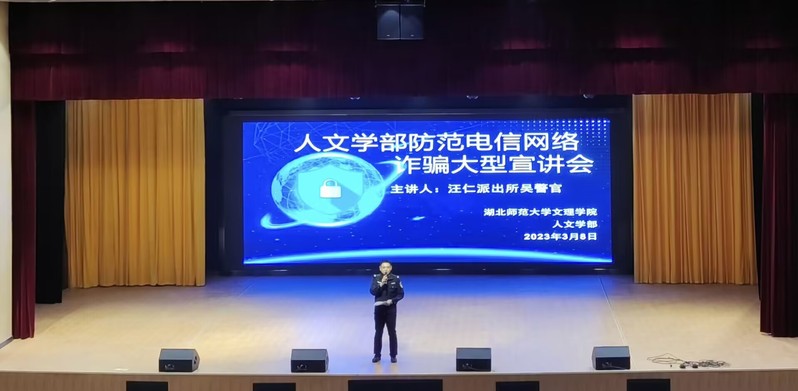 为增强学生的防诈安全意识落实反诈骗行为,人文学部于36日— 38日晚6:30学校学术活动中心举行反诈骗巡回宣讲活动,并邀请汪仁镇派出所吴警官来校进行反诈骗宣讲。