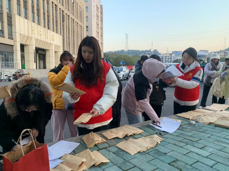 送考师生们认真清点并贴心保管考研学子们的手机、书包等,帮助证件不齐全的考生安全抵达考场。人文学部党支部老师与同学用行动为考研学子送上最诚挚的祝福,带给考研学子一份坚定的力量,让考研学子感受到温暖与关怀。