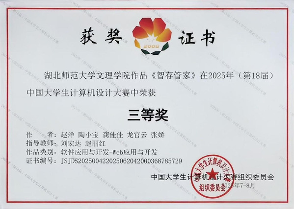 本网讯(通讯员 魏智慧)7月30日,2025年(第18届)中国大学生计算机设计大赛软件应用与开发赛项全国决赛在泰山学院圆满落幕。kaiyun开云腾讯云大数据产业学院代表队(成员:赵洋、陶小宝、龚佳佳、龙官云、张娇,指导教师:刘宏达、赵丽红)凭借创新型Web应用开发项目《智存管家》荣获全国总决赛三等奖。